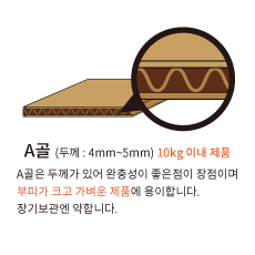 | A골 | 4mm ~ 5mm | 10kg 이내 제품 | 부피가 크고 가벼운 제품 |