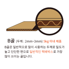 | B골 | 2mm ~ 3mm | 5kg 이내 제품 | 일반적인 택배박스 |