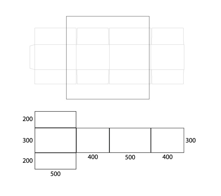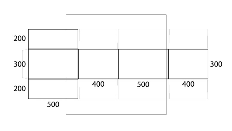 박스 사이즈 대로 네모 모양을 추가로 만드시면 됩니다. (예: 500mmx400mmx300mm)