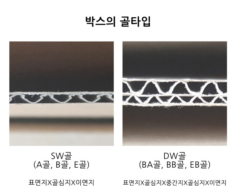 박스는 골판지로 이루어져있는데 골판지의 겹마다