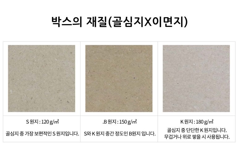 보통 박스가 거기서 거기 라고 하시는데, 사용하시는 용도에 따라 재질이 바꿀 수 있기 때문에